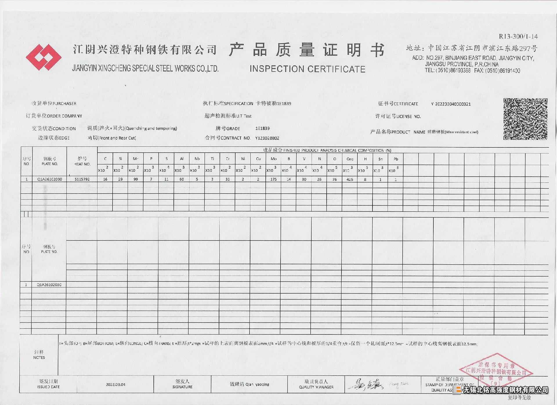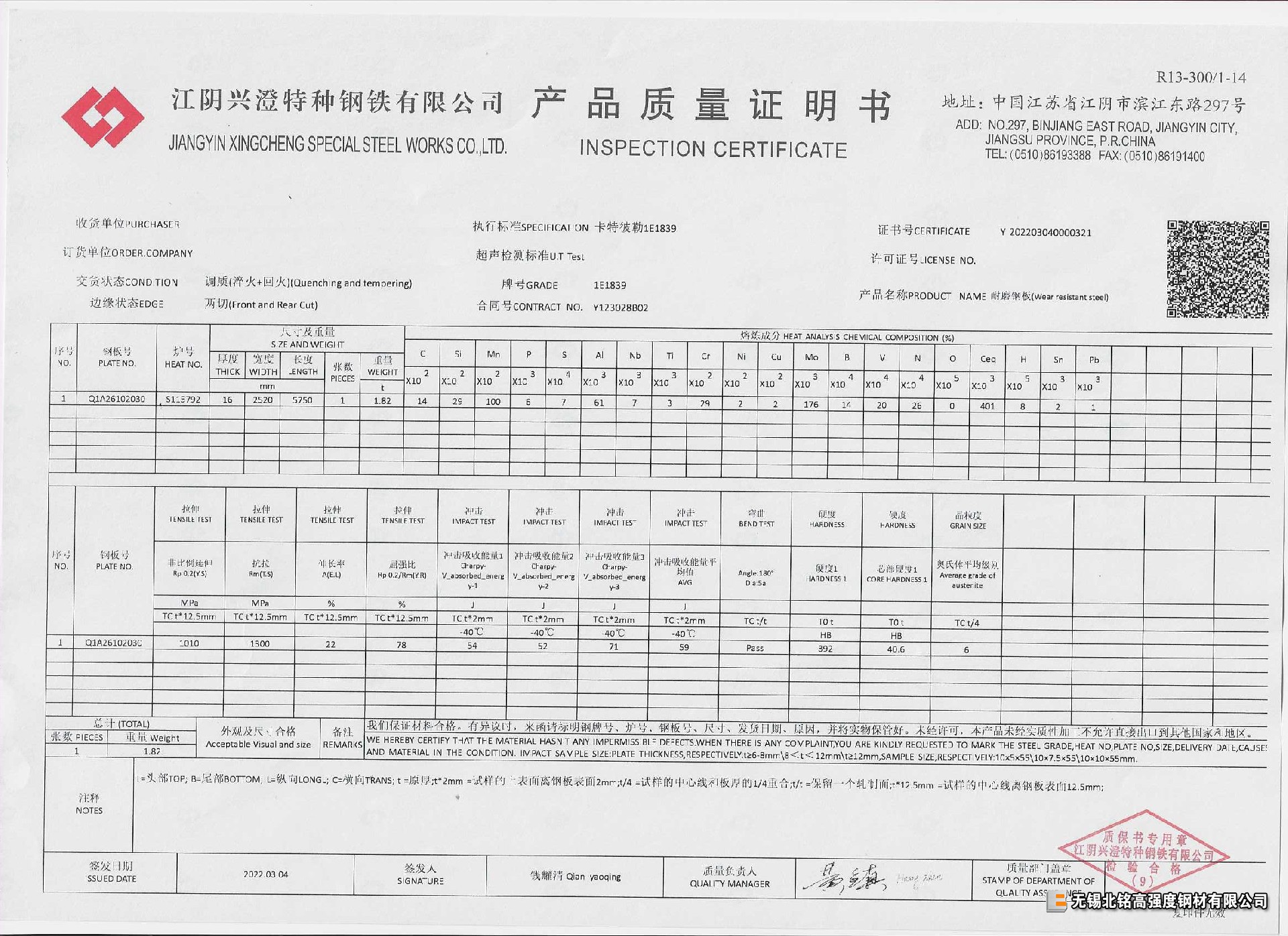 卡特彼勒企標1E1839 耐磨板-40℃低溫沖擊,保折彎,保探傷,少量現(xiàn)貨!